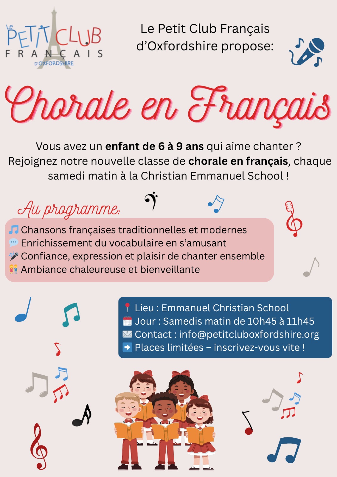 Poster Chorale_ Rentree_2025-2026_PCFO Posted on August 26, 2025 by Petit Club Next Return to Nouvelle classe de chorale pour la rentrée 2025-2026